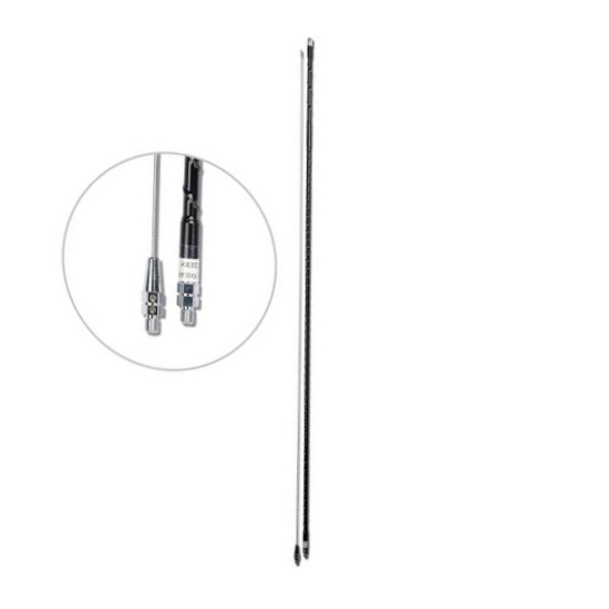Antenne mobile à enroulement hélicoïdal Principales caractéristiques/spécifications :Fréquence : 5MHz Longueur : 245cm VSWR : 1.5:1 ou mieux Puissance : 250 Watts Raccord : 3/8ththread Bande