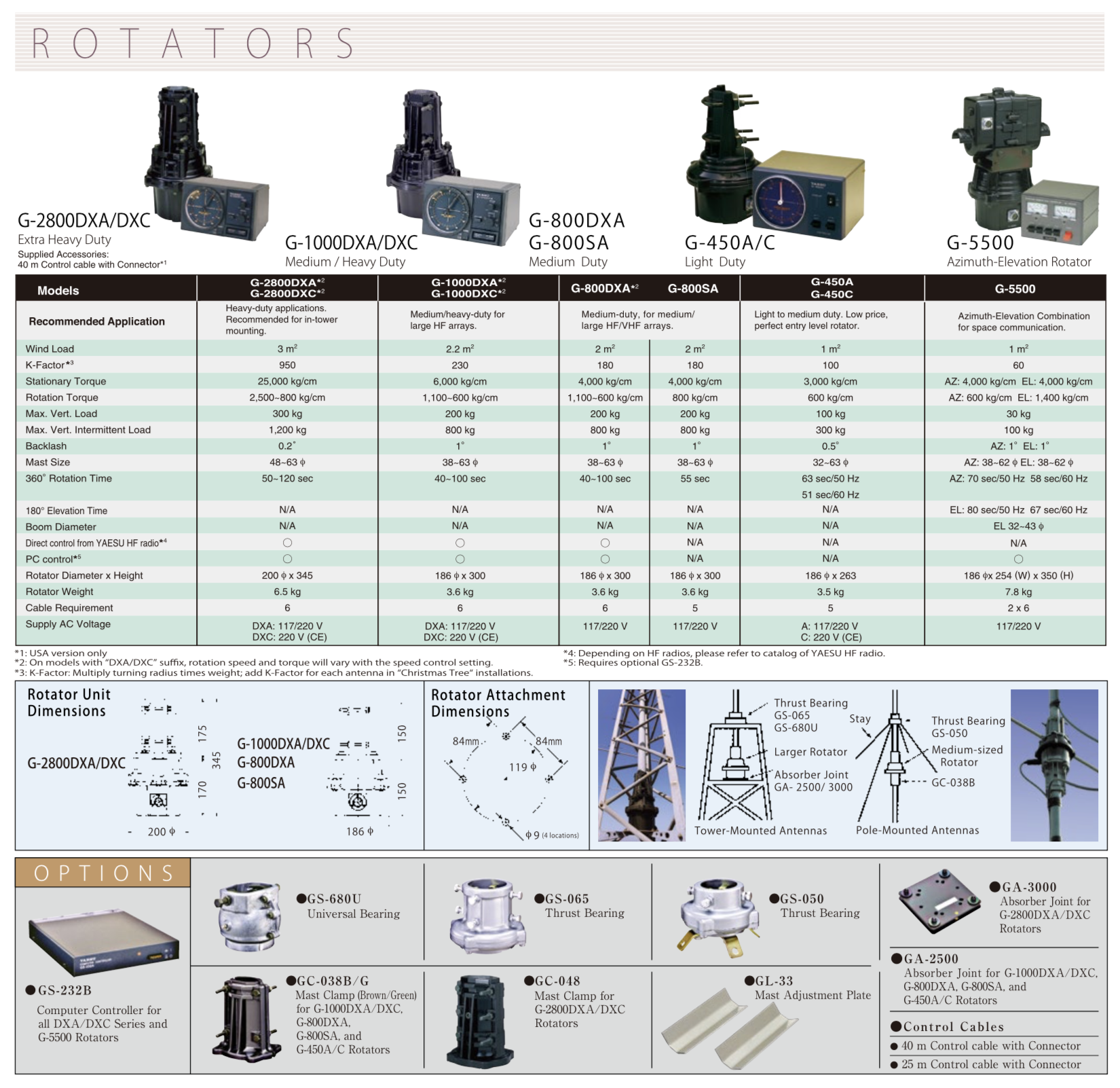 Rotateur d'antenne Yaesu G-450CDC pour charge verticale maximum de 100kg. Requiert le support de mat GC-038 pour le monter en tête d'un mat (disponible en option).Charge verticale maximum : 100kg