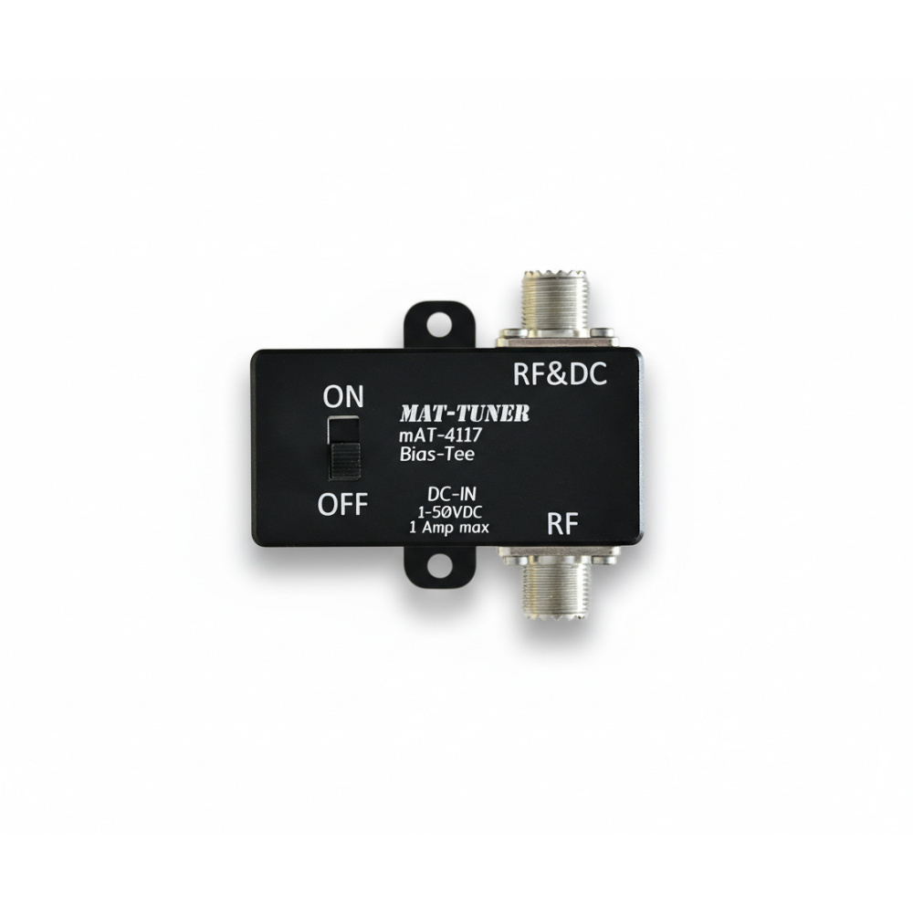 Le mAT-TUNER mAT-4117 est un accessoire indispensable pour les installations radioamateurs nécessitant une alimentation déportée via le câble coaxial. Ce Bias-Tee de haute qualité permet d'injecter une tension continue (DC) dans la ligne coaxiale pour alimenter des équipements distants tels que des boîtes d'accord automatiques (tuners), des préamplificateurs ou des commutateurs d'antenne, tout en laissant passer le signal RF avec une perte minimale.