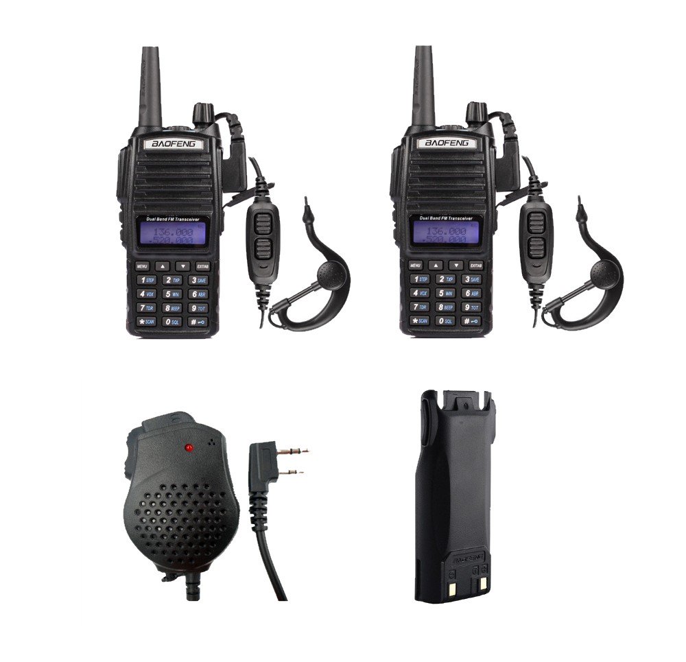 Le talkie-walkie UV-82 permet de surveiller 2 fréquences simultanément, il dispose d'un double bouton PTT pour parler, est équipé d'une radio FM, d'une lampe à led et d'un boitier résistant (pour les activités extérieurs, avec gros boutons pour utilisation avec gants).